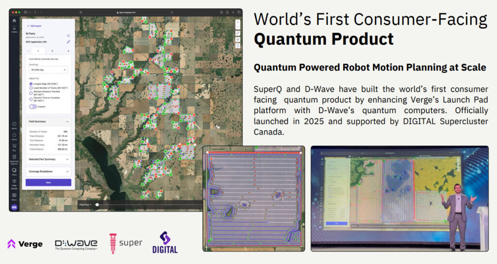 SuperQ has even launched the world’s first consumer-facing quantum product. Working with D-Wave and agricultural robotics company Verge, SuperQ built quantum-powered motion planning for autonomous farm equipment.
