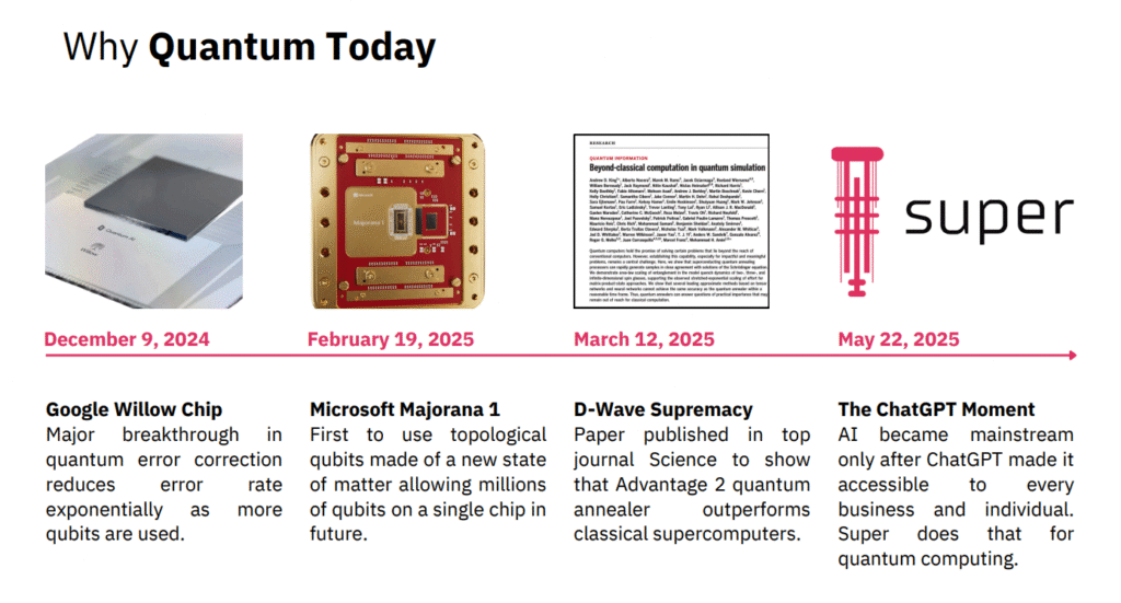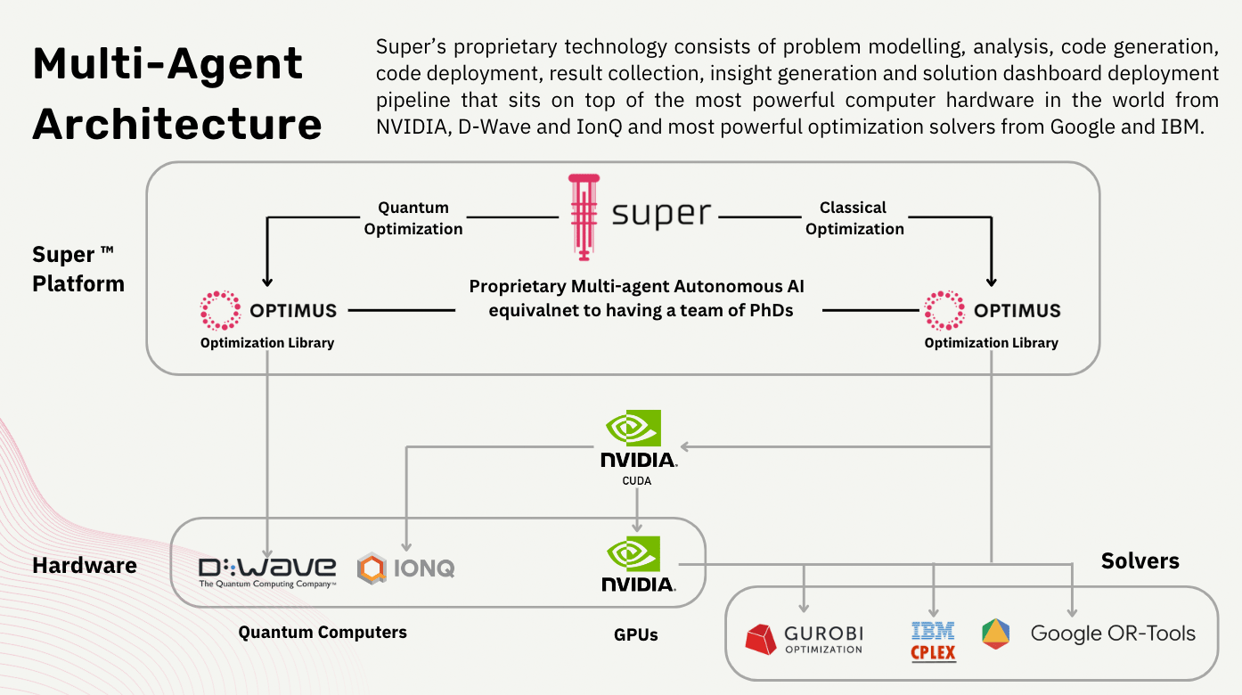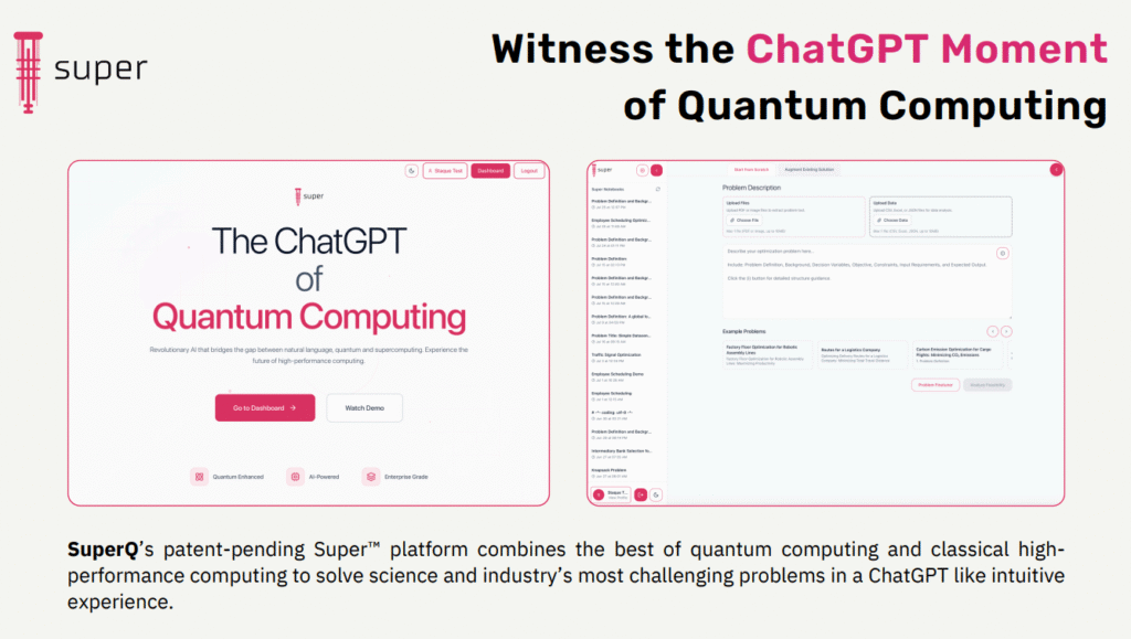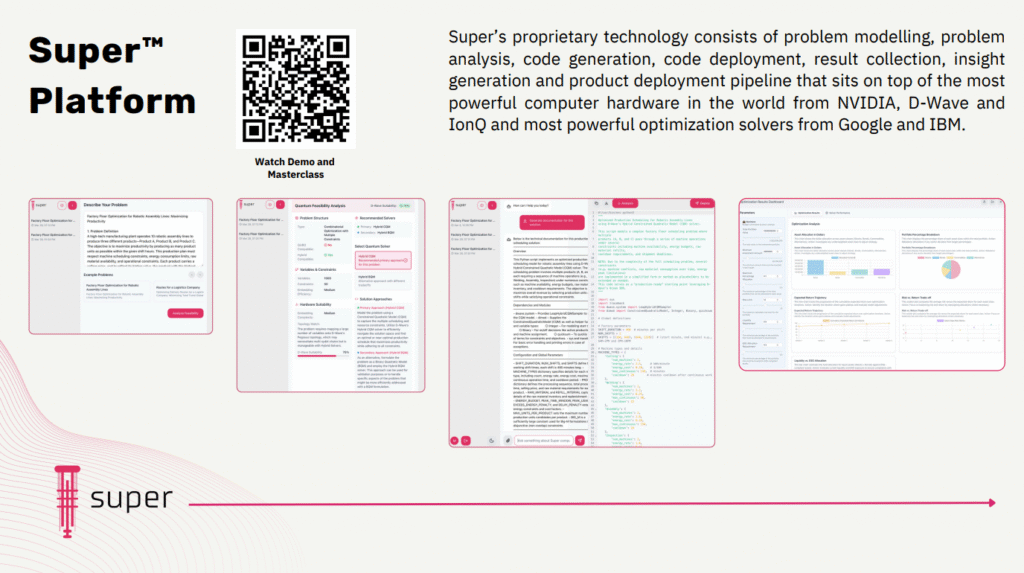 The Super™ platform sits between quantum hardware and business applications, translating plain-language problems into quantum solutions automatically. As more businesses adopt quantum computing, that translation layer becomes increasingly valuable and difficult to displace.