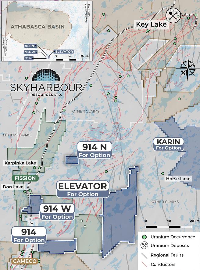 Skyharbour entered into an option agreement with North Shore Uranium on the Falcon Uranium Project whereby North Shore can earn an initial 80% interest in the claims over a three year period by fulfilling combined cash, share issuance and exploration expenditure commitments. North Shore is planning exploration and drilling to commence in early 2025.