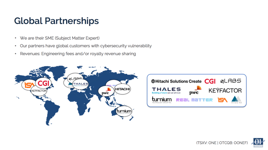 There is a strategic advantage with this approach. 01 Quantum provides the quantum-safe engine while partners handle customer relationships, sales, and marketing.