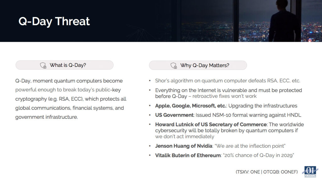 This is not a distant threat. It’s a present danger creating a trillion-dollar market for effective solutions…and 01 Quantum Inc. (TSXV: ONE); (OTCQB: OONEF) spent over six years building exactly what enterprises and governments now urgently need.
