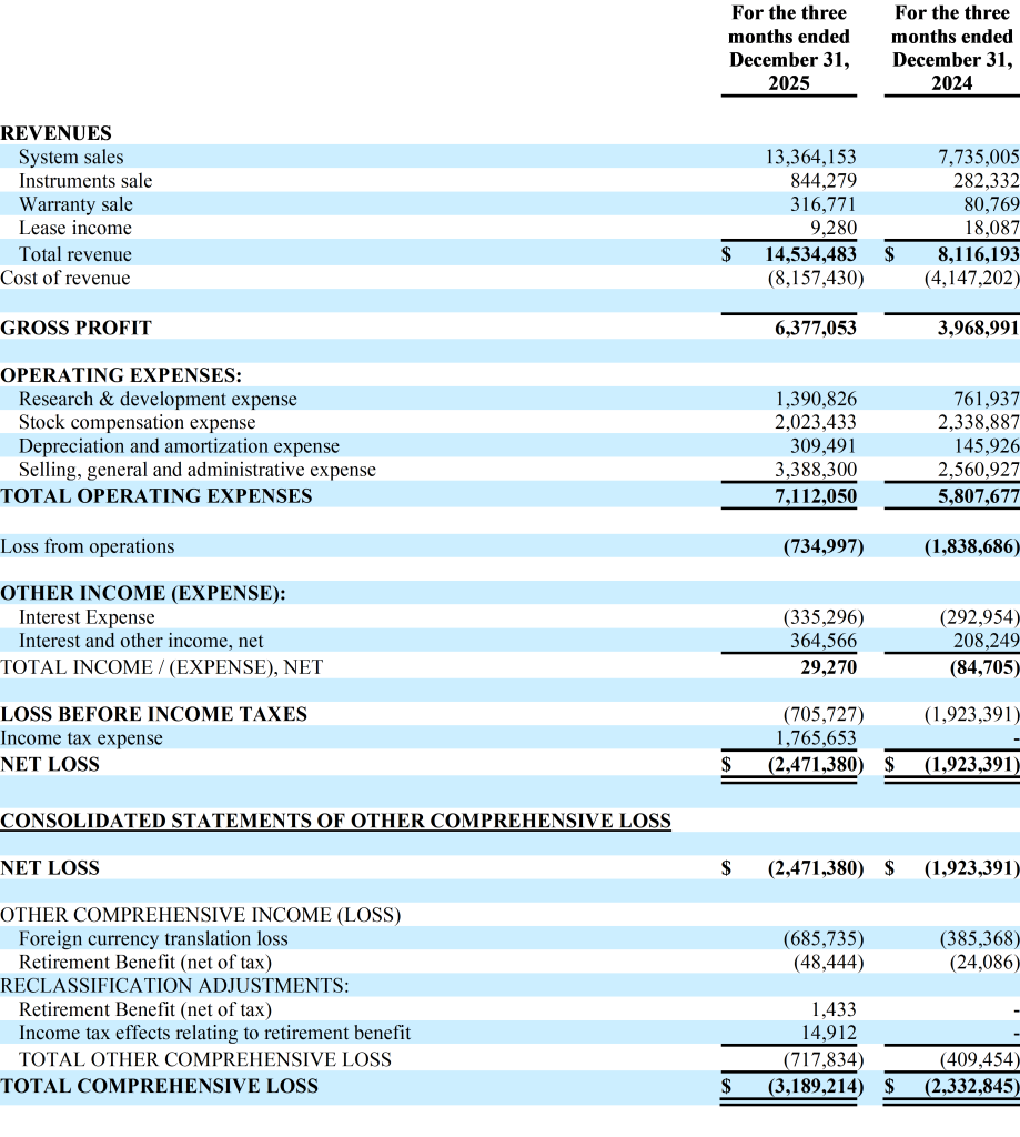 Dr. Srivastava continued, “After quarter-end we completed a private placement of common stock, which brings us new long-term oriented institutional investors and approximately $18.6 million of gross proceeds aimed to fuel SS Innovations’ growth in 2026 and beyond. Significant insider participation in this financing reflects our strong confidence in SS Innovations’ future. We will continue to invest in enhancements to our advanced, cost-effective SSi Mantra surgical robotic system and expand our capacity to lead the vast Indian market, penetrate underserved global geographies, and prepare for our entry into the United States and European Union. We anticipate that the U.S. Food and Drug Administration will complete its review of our 510(k) premarket notification for the SSi Mantra by mid-2026. We also continue along the pathway towards a European Union CE marking certification for the SSi Mantra, which we believe we can also obtain this year. In conclusion, we expect continuing strong growth in 2026 as we deploy the SSi Mantra in existing and new markets, increasing access to world-class surgical robotic care.”